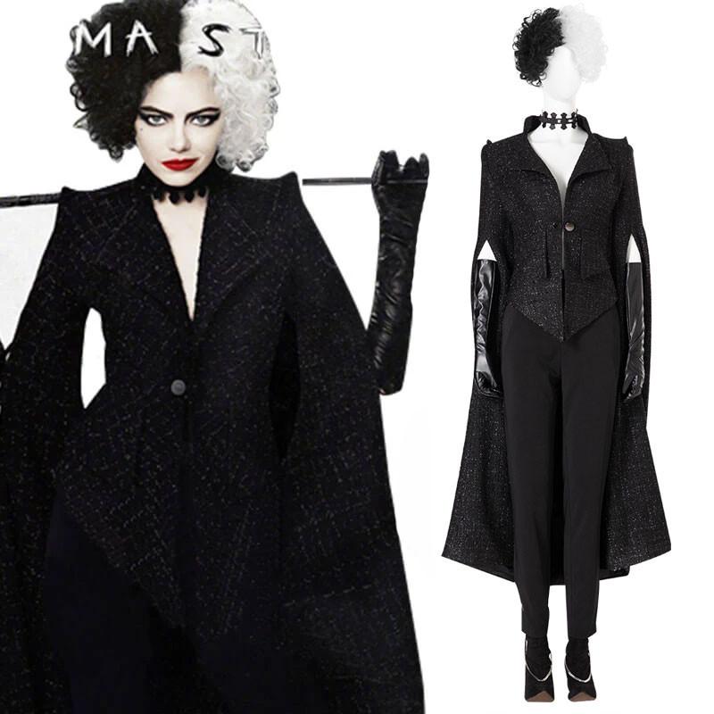 It has to be said that Cruella is a successful fashion movie. The costumes are designed by two-time Oscar Academy Award winner Jenny Beavan. Cruella Deville Costumes feature avant-garde mix match, stitching and collision, and match black as the main color, which is sought after and loved by most of the audience. Next, we will introduce you to the 10 most representative Cruella De Vil costumes.