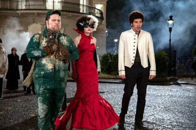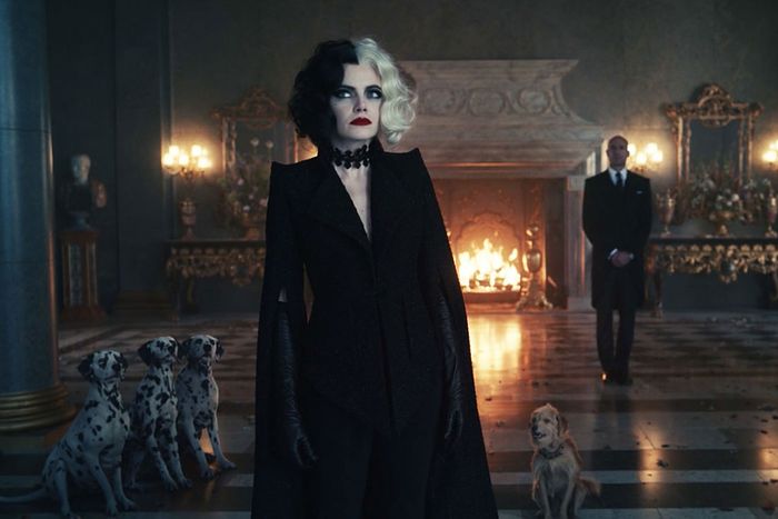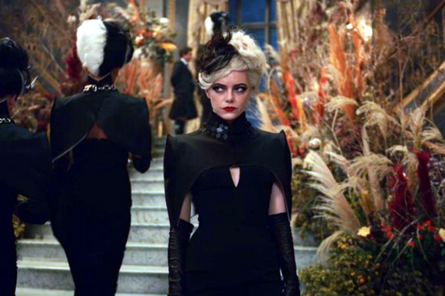 This is one scene at the last climax of the movie, Cruella appeared in front of the camera, wearing a V-neck dress and square-shoulder cloak. Of course, he also brought his unique and evil expression, which indicates that he would cause trouble.