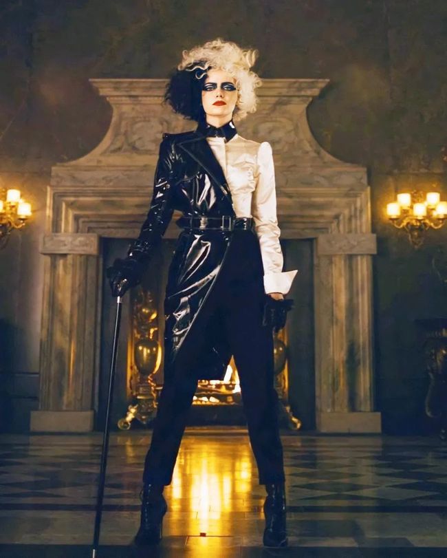 In daily life, we can wear like Cruella, a black jacket with a white shirt, match a dark jeans and Martin boots underneath, which is very cool.