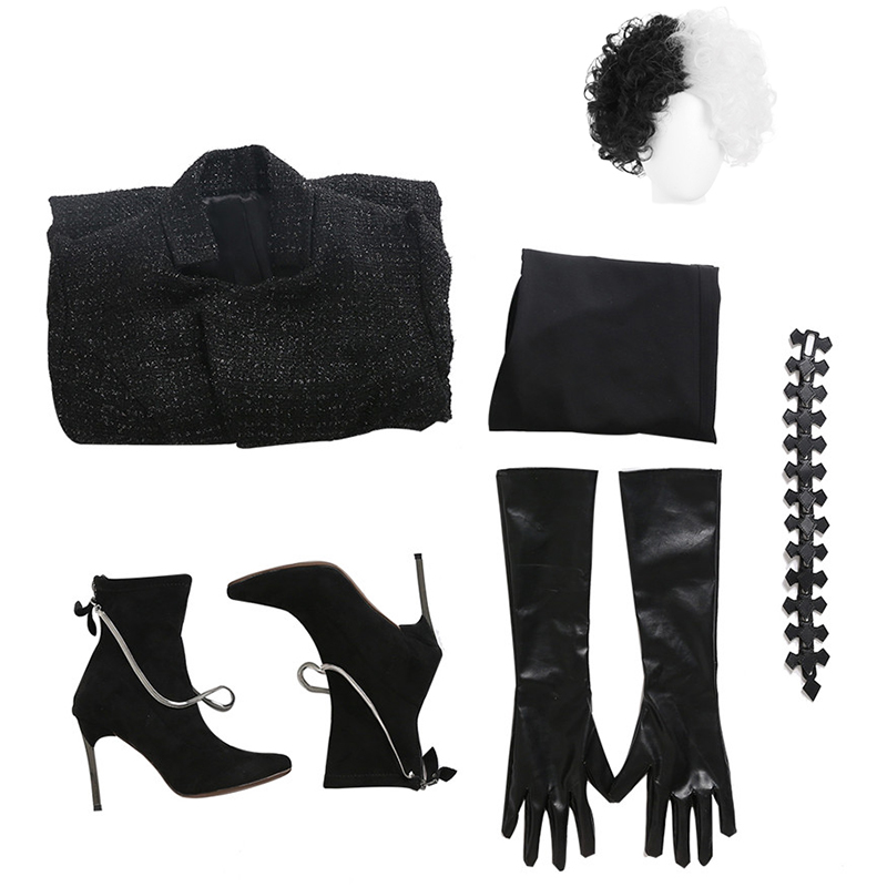 Cruella De Vil Coat Full Set includes: Sleeveless dress, coat, gloves, bag