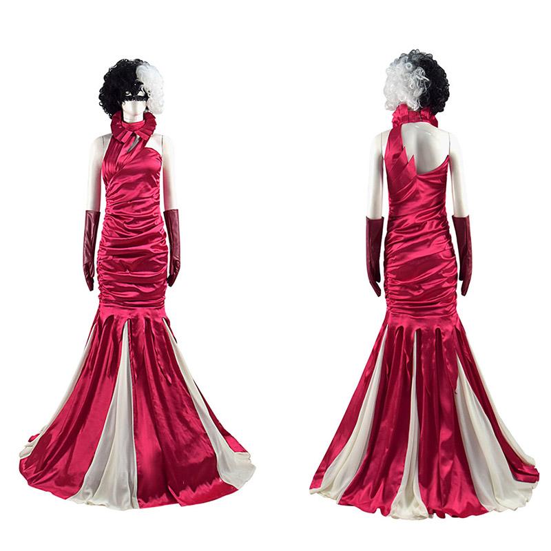 As you can see from the picture, this red dress restores the one Cruella wore. Cruella Red Dress uses a large of Satin and pearl chiffon fabrics, And it takes three workers several weeks. You don’t have to worry about the sagging problem of the skirt during dressing because there is a ring of steel wire support at the bottom. In a word, the price of $159.99 is reasonable.